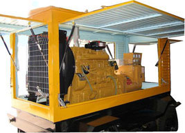 大石桥柴油发电机组/移动柴油发电机组设计独具创新,机动性高、重心低、制动安全、制造精良、外形美观。 大石桥拖车车架采用槽梁焊接成框架结构,节点选择合理、强度高、刚性好;同时装有钢板弹簧悬架结构;拖车采用高度可调节插销式牵引架,适用于各种高度牵引车;采用圆形钢管焊接直通式车轴,结构紧凑,安全可靠;车架四角设有机械式支撑装置,配备惯性行车制动、驻车制动和脱离应急制动,确保机组在各种状况下的安全;车架前端设有支撑轮,具备承受机组垂直载荷的功能的同时还具备导向功能;整车配备转向和刹车指示灯,同时装有尾灯标准插头